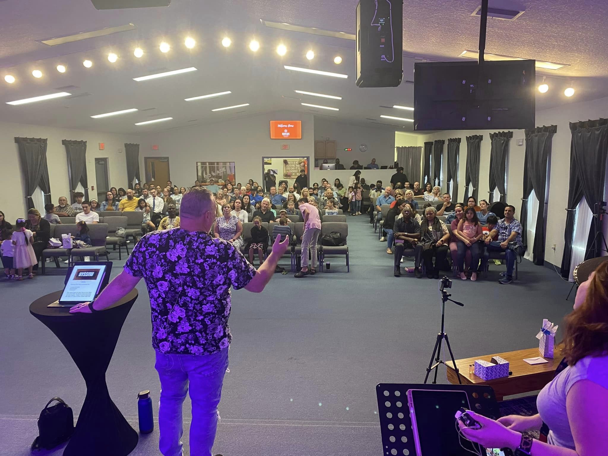 Time of worship as our Praise band leads us. Then a time of offering and the the Pastor shares a 40 min. sermon. Worship Experience last about 75-90 min.